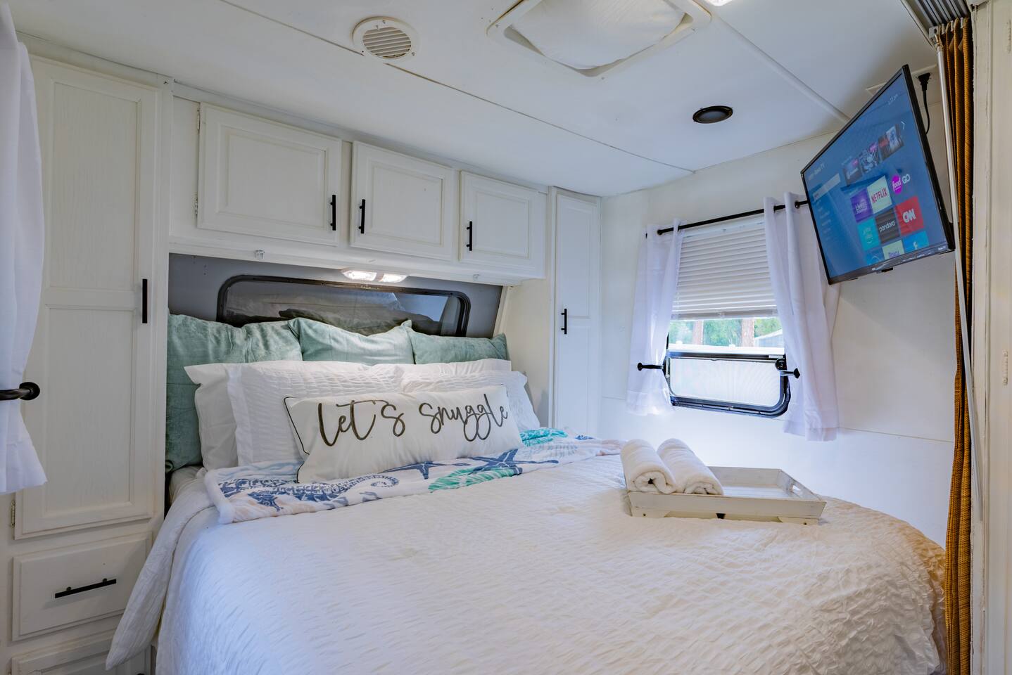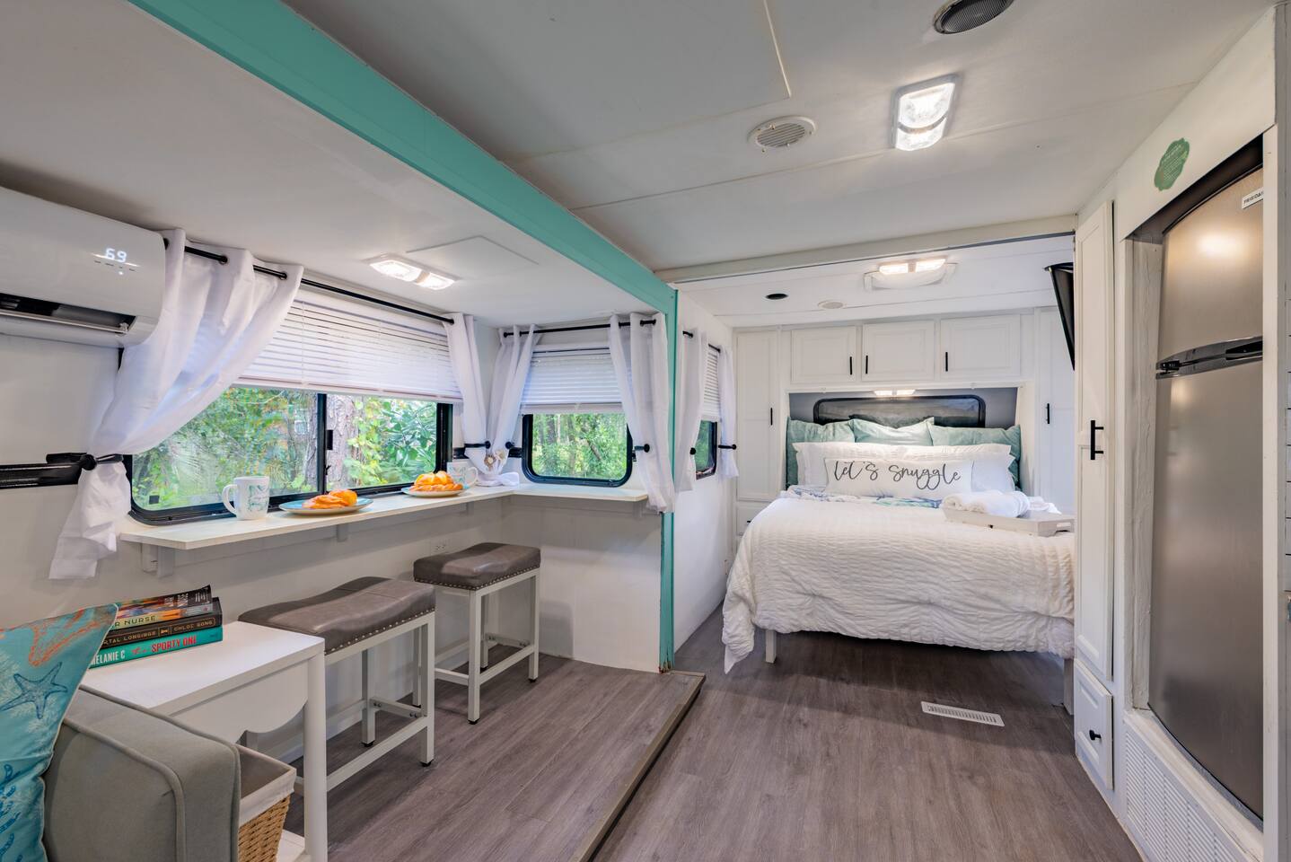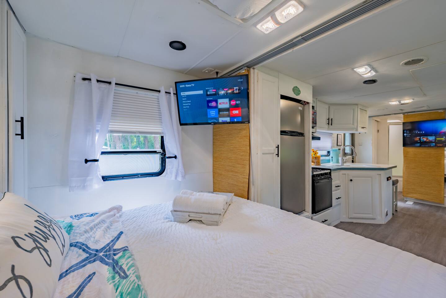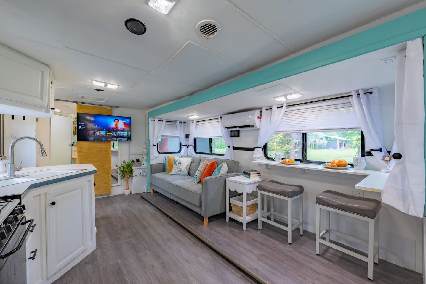Experience tiny home living with a one-of-a-kind outdoor shower and magical lights that create a dreamlike vibe at night. Just 5 minutes from The Krates and 9 minutes from Epperson Lagoon, this Tropical Getaway RV makes you forget it’s even an RV. Inside, modern comforts and cozy charm await, including a full kitchen and inviting space to relax. Ideal for short getaways or longer stays, this retreat blends nature, comfort, and convenience—your unforgettable Wesley Chapel escape starts here.