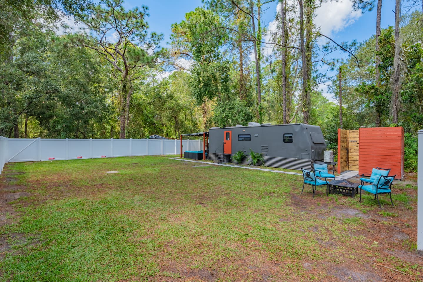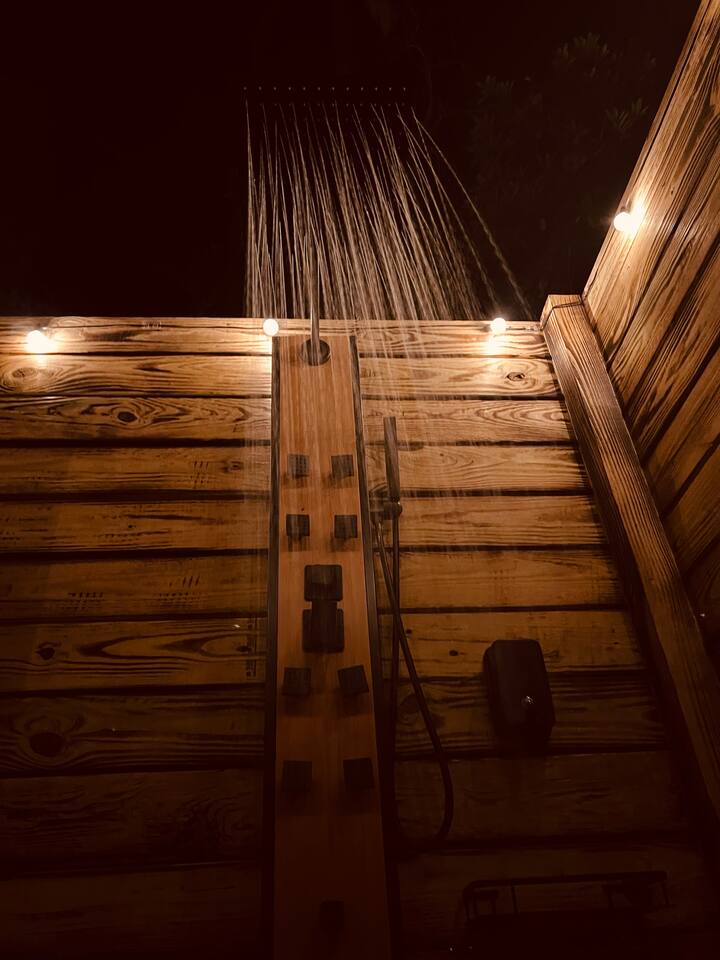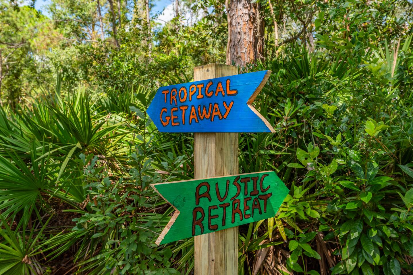 Wildlife & Insects: You’re in Florida’s natural environment, so it’s possible to see geckos, palmetto bugs, mosquitoes, or other small critters during your stay. This is part of the tropical landscape. Visitors: Only registered guests are allowed overnight. Daytime visitors are fine as long as the total number of people never exceeds the number of guests listed on your reservations and visits are kept to a minimum. All visitors must leave by nightfall. Property Boundaries: Please stay within the fenced area. The land beyond the fence is the owner’s private property and isn’t accessible to guests. Pets on Property: There are two small, friendly dogs (a dachshund and a Yorkie) who live on the property. They rarely get out, but on occasion they might sneak through the fence to greet guests. Rustic Retreat: Another cabin, Rustic Retreat, is on the same property. It’s a separate listing and not included in your stay unless booked together. Outdoor Shower: The outdoor shower is private and for your use only. It’s a key part of the tropical experience — especially at night under the lights.